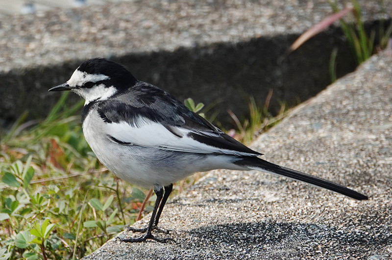 スズメと同じくらいの大きさで、尾羽が長いです。ピコピコと尾羽を動かしていることが多くて可愛いです。 似ている「セグロセキレイ」との違いは、目の下が白いことです。樋井川に沢山いますが、学校の中やコンビニの駐車場など校区内のどこでも見ることができます。