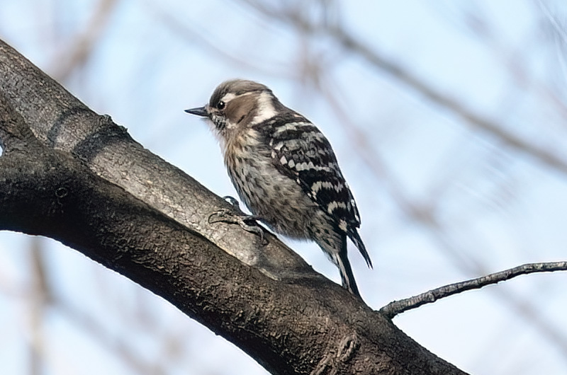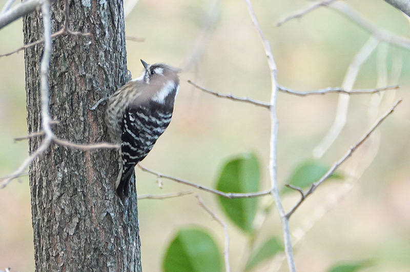 日本にいるキツツキの中で一番小さくて、一番身近なキツツキです。油山市民の森などの森の中でよく出会えますが、平地の公園でも見ることがあります。