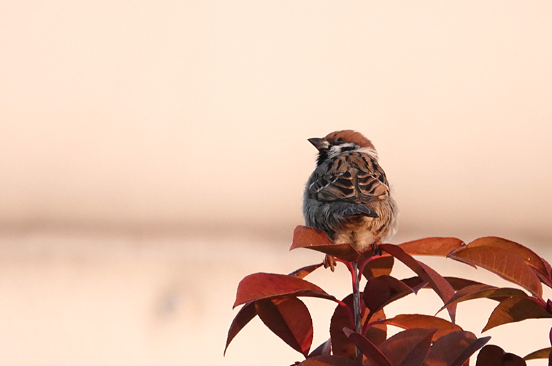 最も身近な小鳥です。全長14.5cmで、鳥の大きさの基準になる「ものさし鳥」のひとつです。