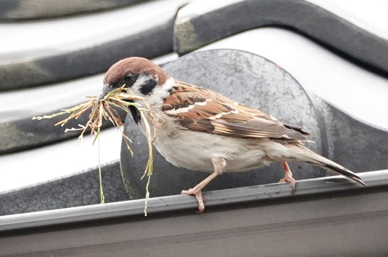 4月。草を集めて巣作りをする様子。