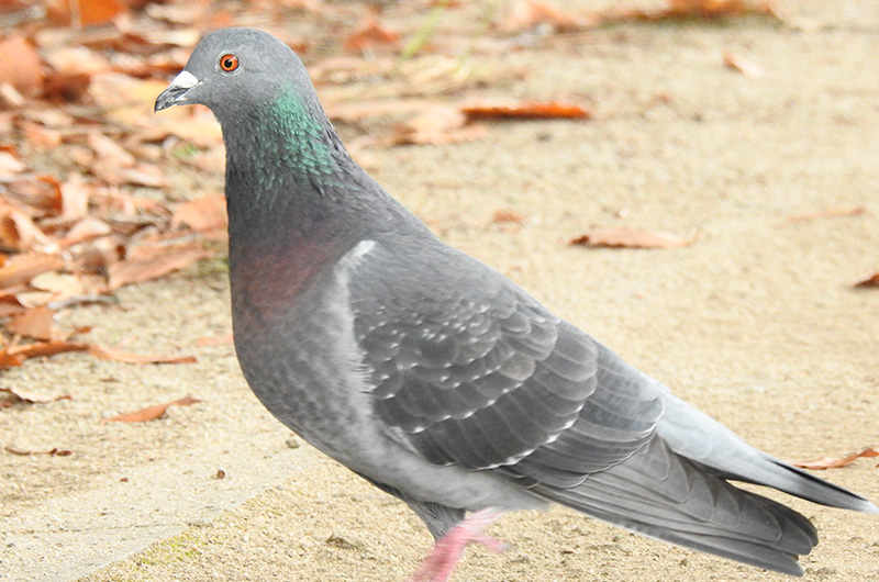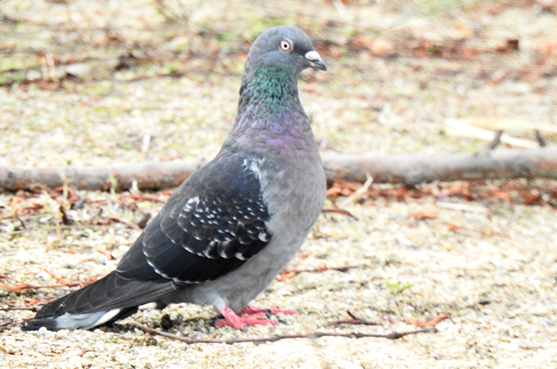 一番良く見かけるハトです。「ドバト」とも呼ばれます。群れでいることが多いです。