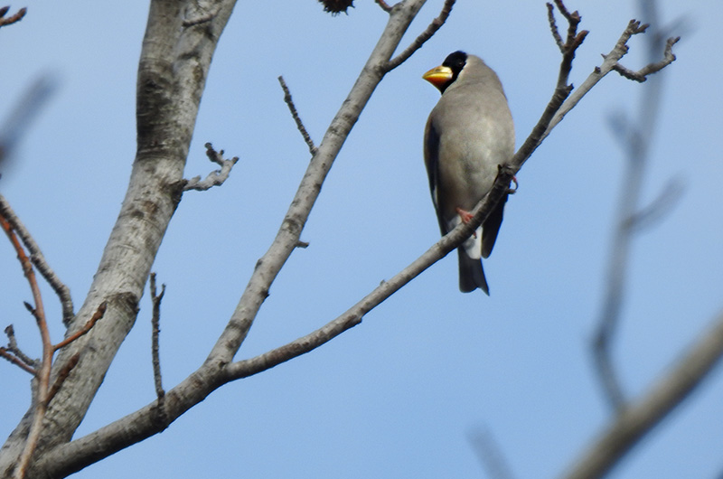 クチバシが太くて大きいです。クチバシが強いので硬い木の実もくだいて食べることができます。 木の高い所にいます。