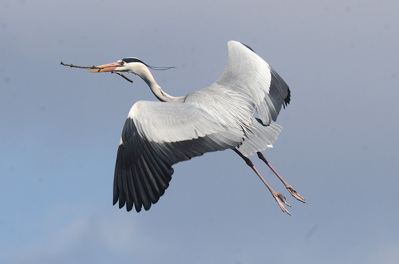 巣作りのために枝を運ぶ様子。