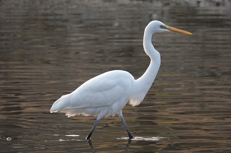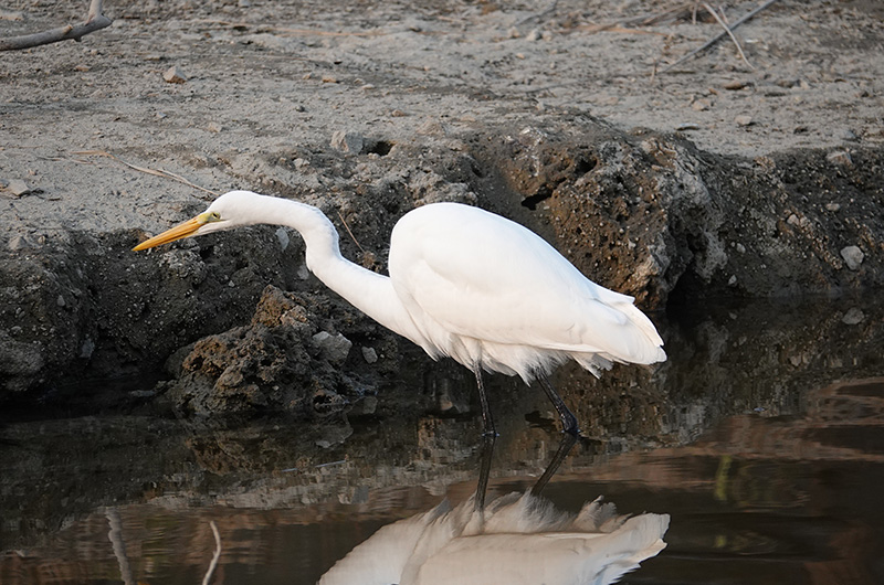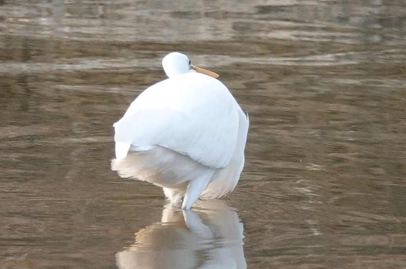 大きなサギで、クチバシや目のまわりの色は季節によって変わります。 「ダイサギ」「チュウサギ」「コサギ」の3つのシラサギ類の中で一番大きな種です。