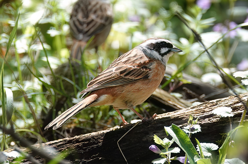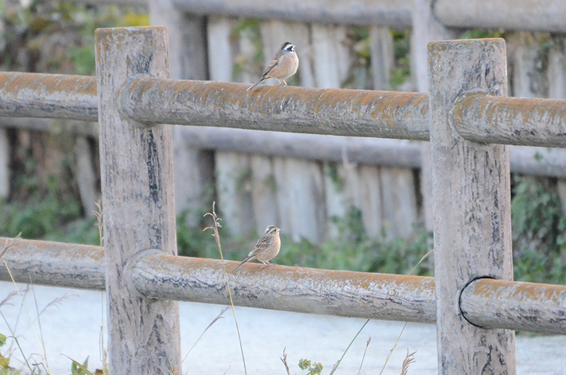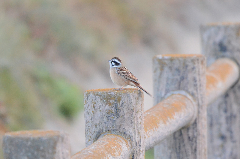 草の茂みや低い木の上で生活していて、高い木の梢にはほとんど行きません。 スズメと同じくらいの大きさだけど、尾羽はスズメより長い。メスはオスに比べて顔のまわりの模様があわくて薄い色をしています。