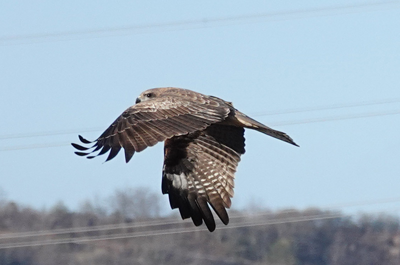 猛禽類の中で最も身近な鳥。「ピーヒョロロロロロ」という鳴き声で、ほとんど羽ばたかずに滑空します。