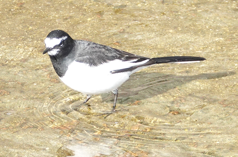 ハクセキレイと似ていますが、目の下が黒いことで見分けられます。日本の固有種です。