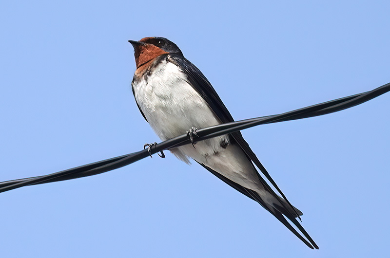 全長17cm。喉と額は赤く、背中は光沢のある紺色です。飛ぶのがとても上手で、空中をとんでいる虫を捕まえて食べます。 家の軒下などに泥や草を使って巣をつくります。さえずりは「土食って虫食ってしぶーい」と聞こえると言われています。また、日本ではツバメの巣は雷や火事を防いでくれる縁起物として大切にされてきました。 福岡では4月頃から見かける身近な鳥です。