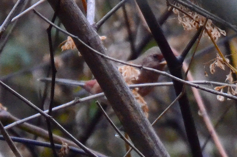 全長15cm。オスは赤い色が特徴的です。福岡に来るのは冬ですが、夏羽はもっと赤色が強く鮮やかになります。ススキなどのイネ科の植物や、タデ科の植物の実を食べます。
