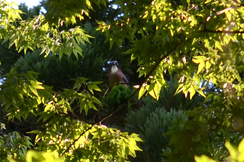 全長33cm。「ジェー、ジェー」としわがれた声で鳴きます。平地でも見られるそうですが、柏原校区では油山の森林に生息しています。蟻浴(ぎよく)といって、羽にアリをこすり付ける行動をすることで知られています。